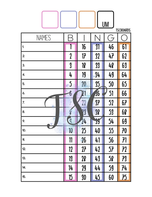 20 Boards • Block Bundle 1-15 Line 1-75 Ball