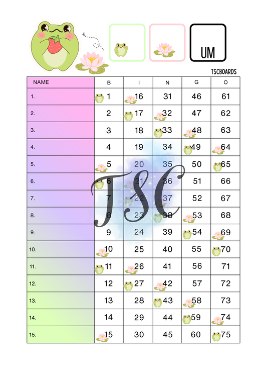 90’s Block Bingo Board 1-75 Ball