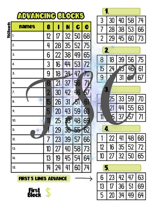 Advancing Blocks Bingo Board 1-75 Ball