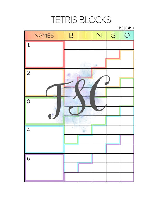 Tetris Groovy Summer Block Bingo Board 1-75 Ball