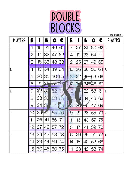 Double Blocks Pastel Bingo Board 1-75 Ball