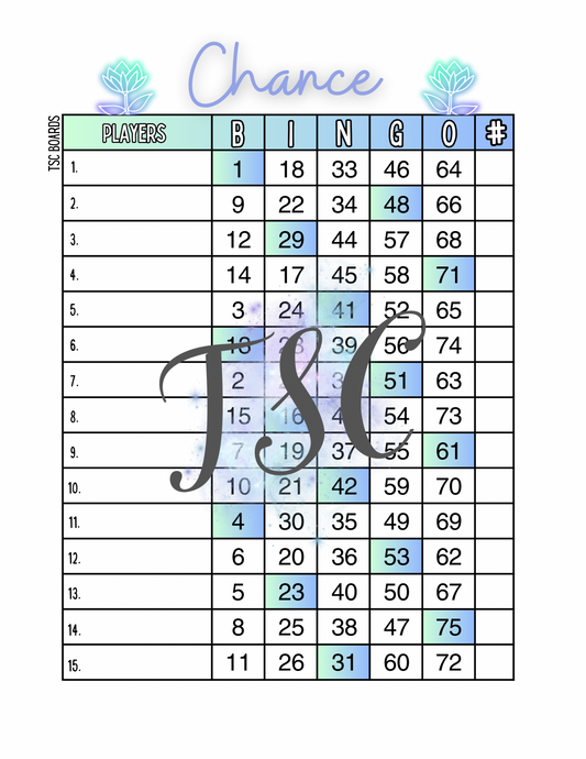 Chance Bundle - 20 Mixed Bingo Boards 1-75 Ball 1-15 Line