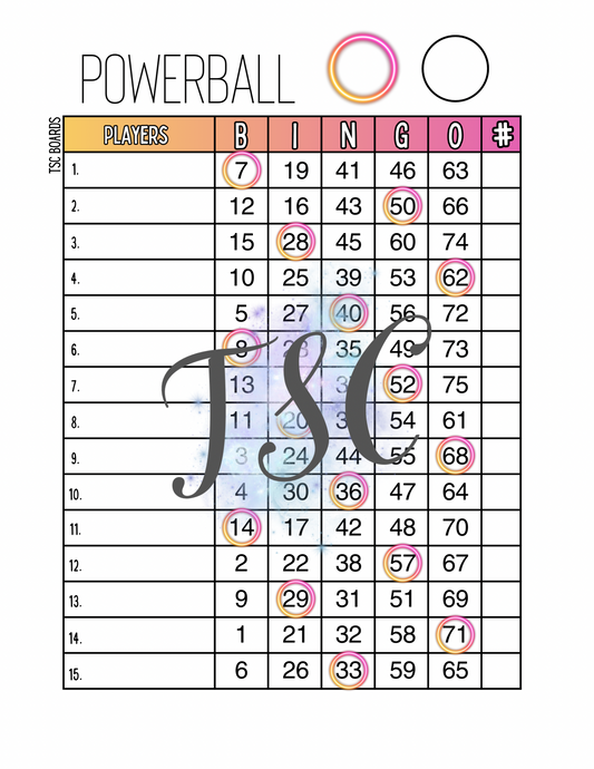 Powerball Bundle - 15 Mixed Bingo Boards 1-75 Ball 1-15 Line