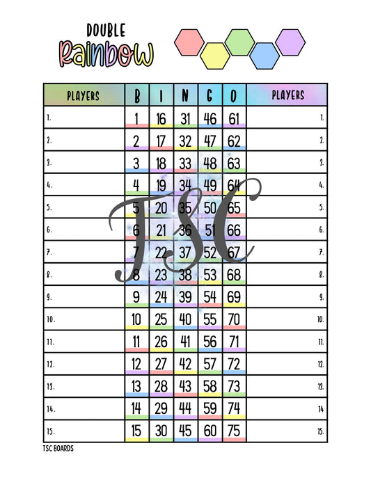 Double Page Rainbow Houdini Bingo Board 1-75 Ball