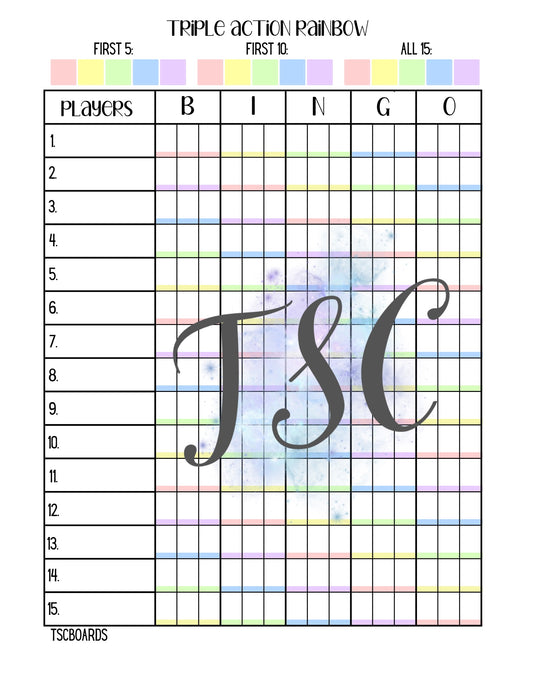 Rainbow X Tetris Double Page Bingo Board 1-75 Ball