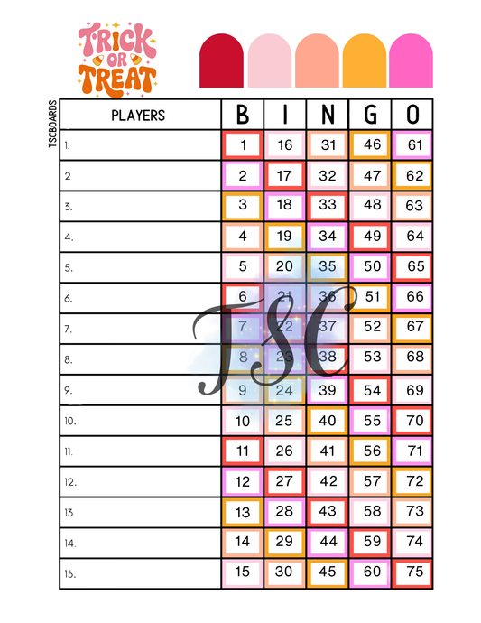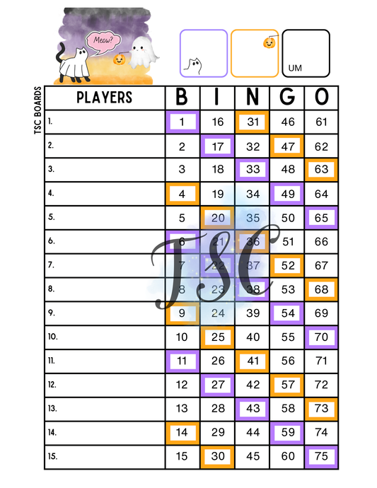 Let’s Go Ghouls Bingo Board 1-100 Ball