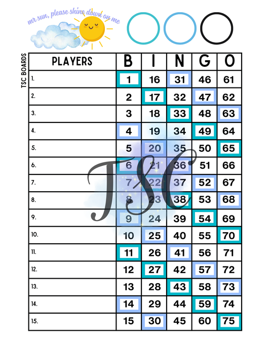Mr SUN 2 Colour Houdini Board 1-75 Ball 1-15 Lines