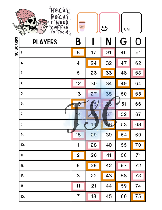 Halloween Drinks Blocks 1-75 Ball