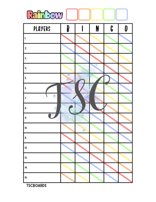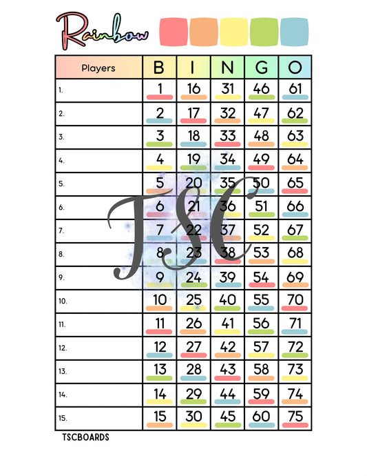 Rainbow Bingo Board 1-75 Ball 1-15 Line