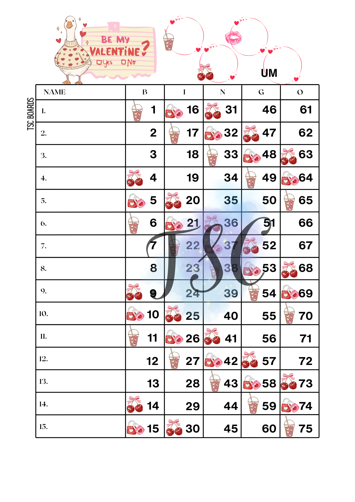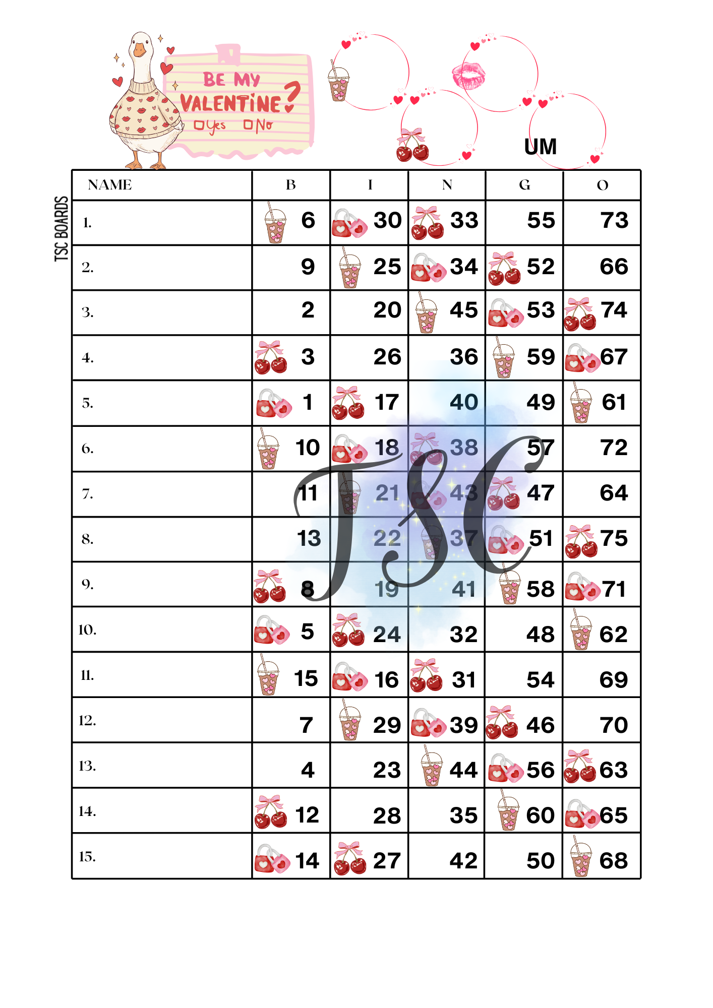 Downloadable pdf - 3 bingo boards (mixed,straight,blank)