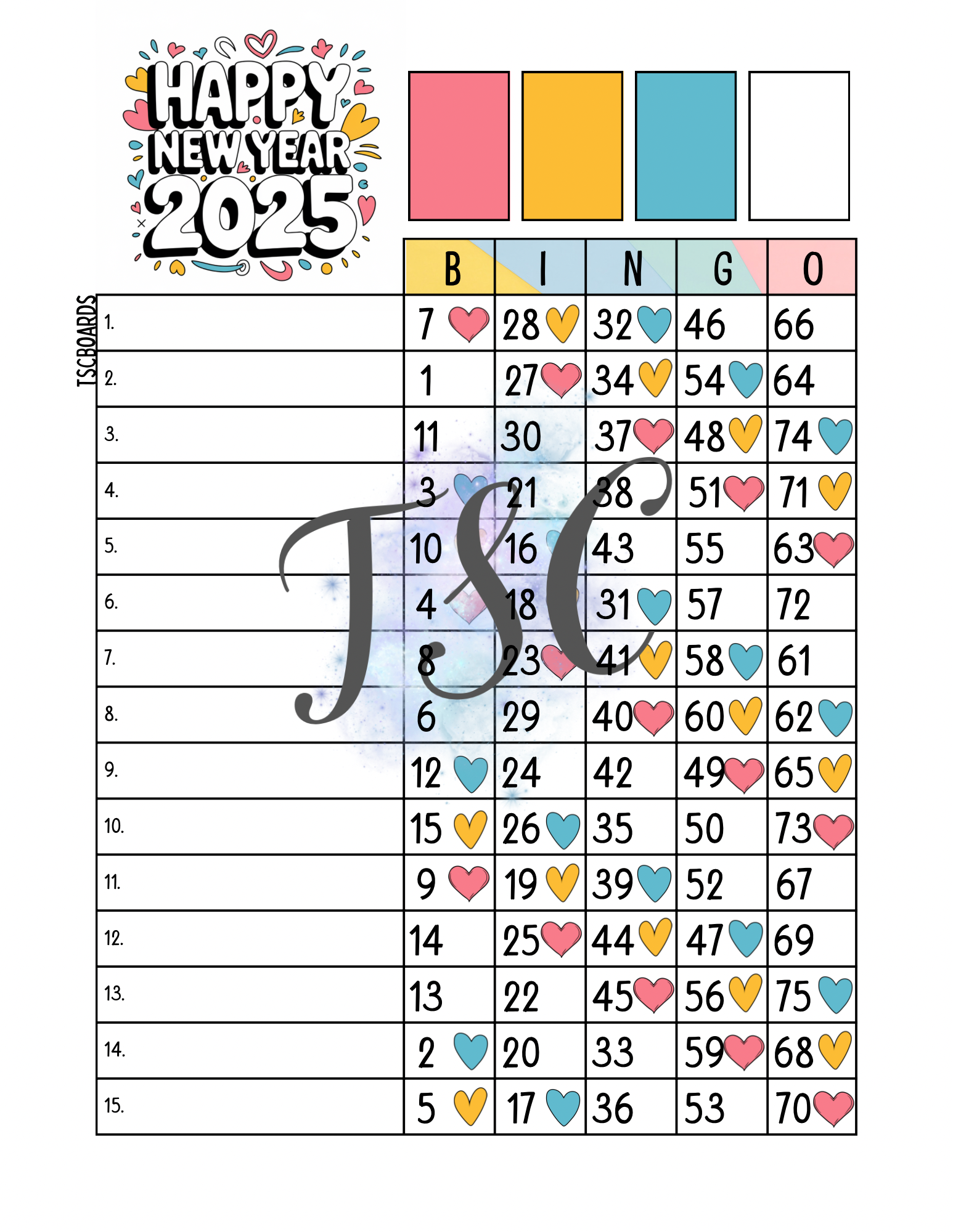 Downloadable pdf - 3 bingo boards (mixed,straight,blank)