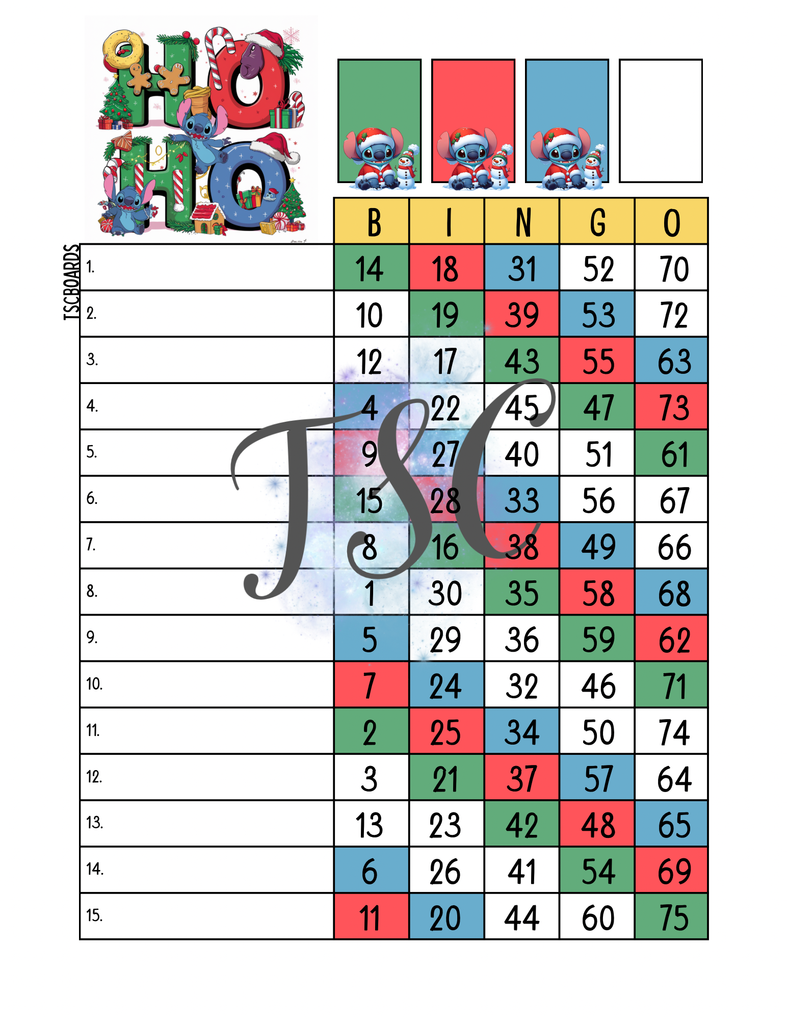 Ho Ho Ho Stitch Bingo Board 1-75 Ball