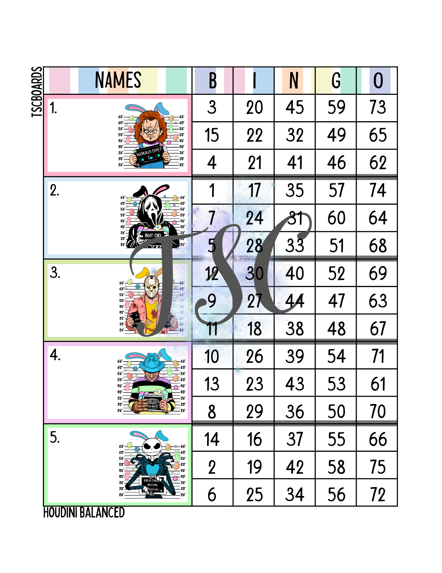 Horror Easter Bunnies Horror Easter Bunny Block Bingo Board 1-75 Ba