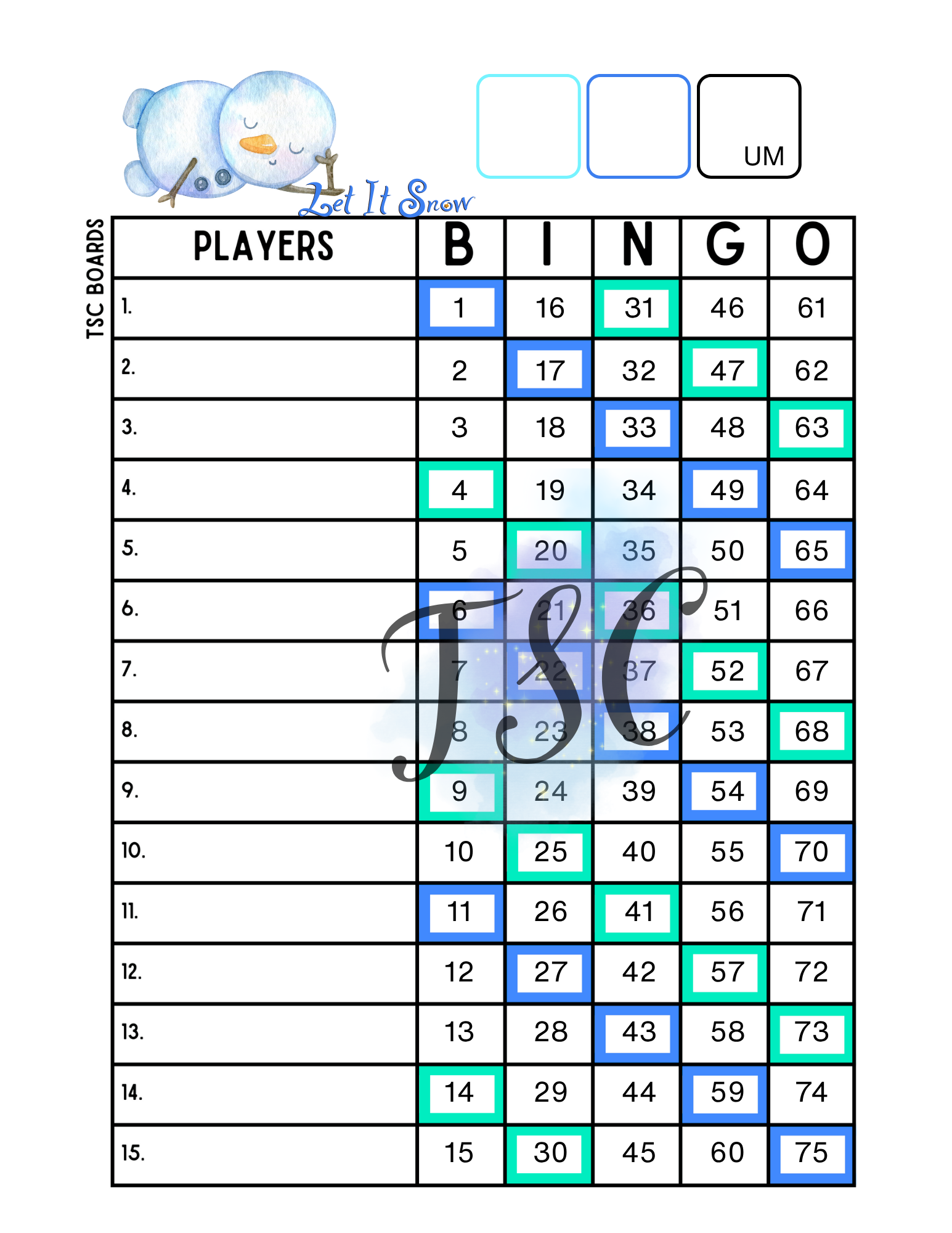 Downloadable pdf - 3 bingo boards (mixed,straight,blank)