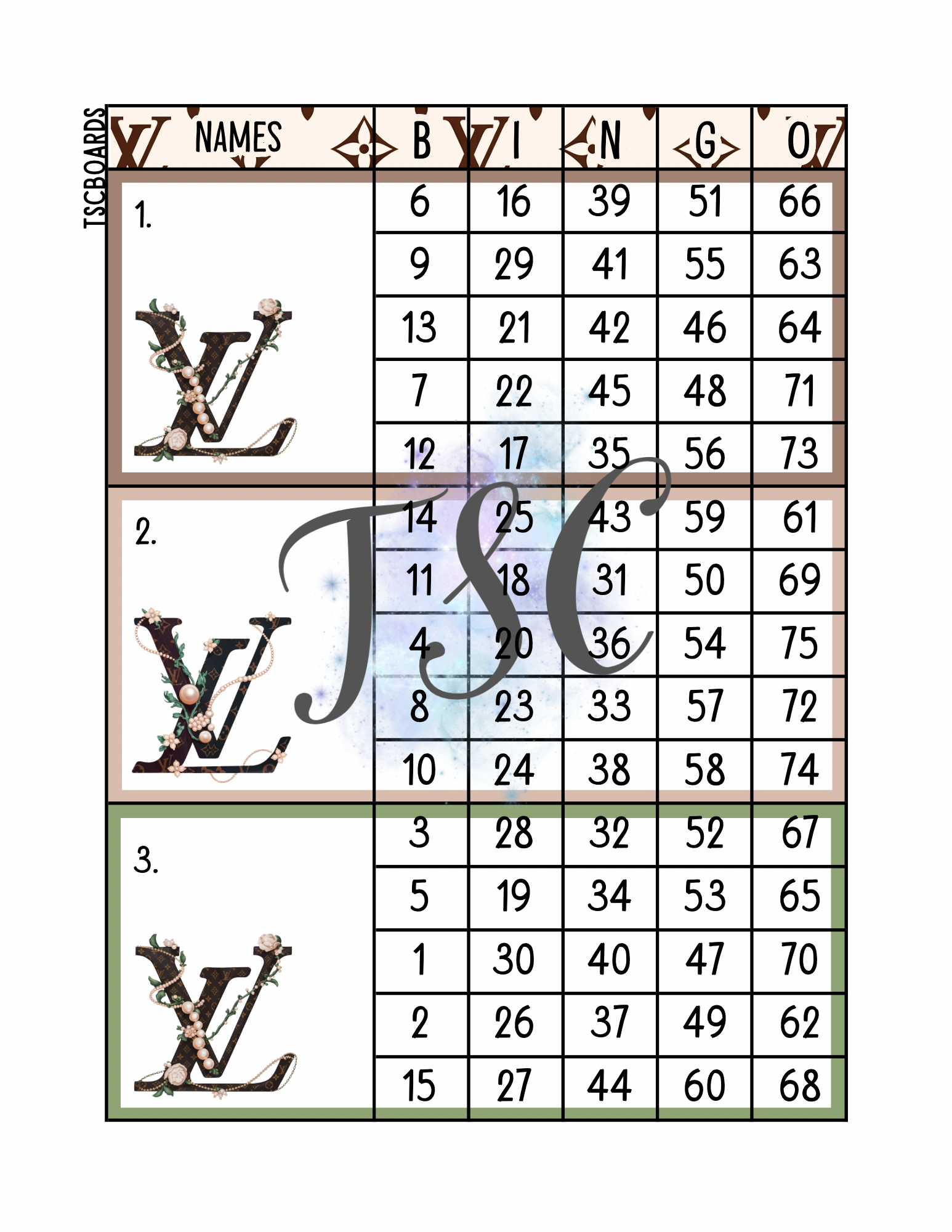 LV Pearl Mega Block Bingo Board 1-75 Ball