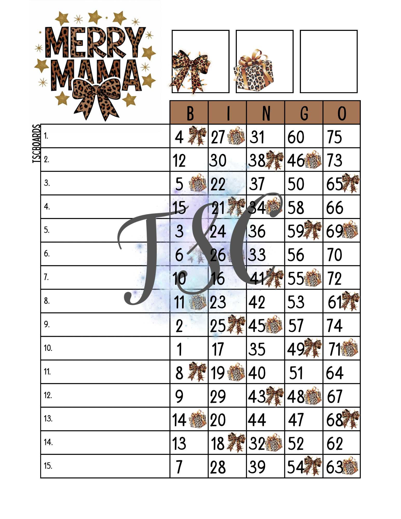Merry Mama Bingo Board 1-75 Ball
